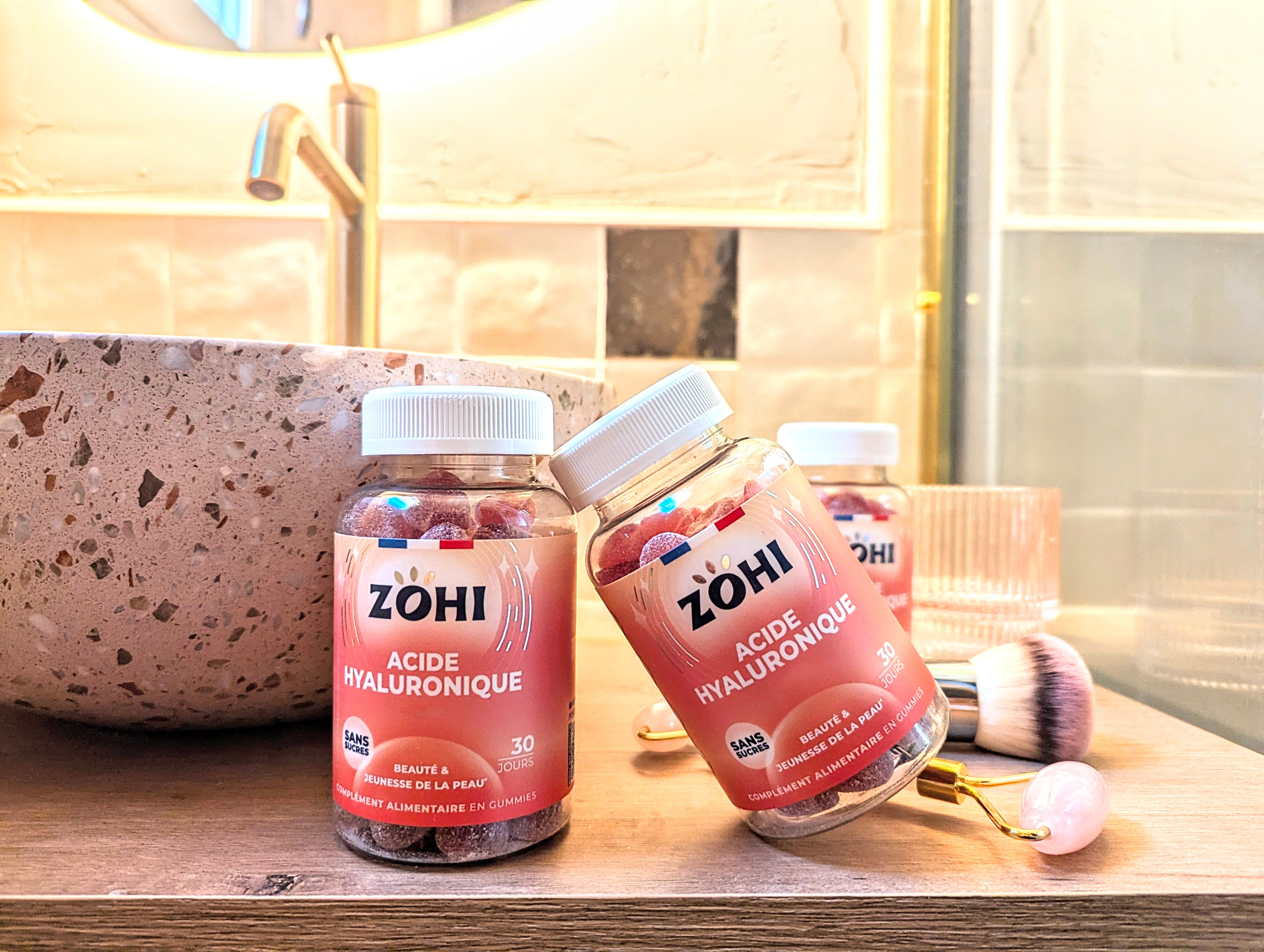 Envie d'une peau éclatante et repulpée ? Découvrez les gummies ZOHI Acide Hyaluronique, des compléments alimentaires fabriqués en France et sans sucres !
